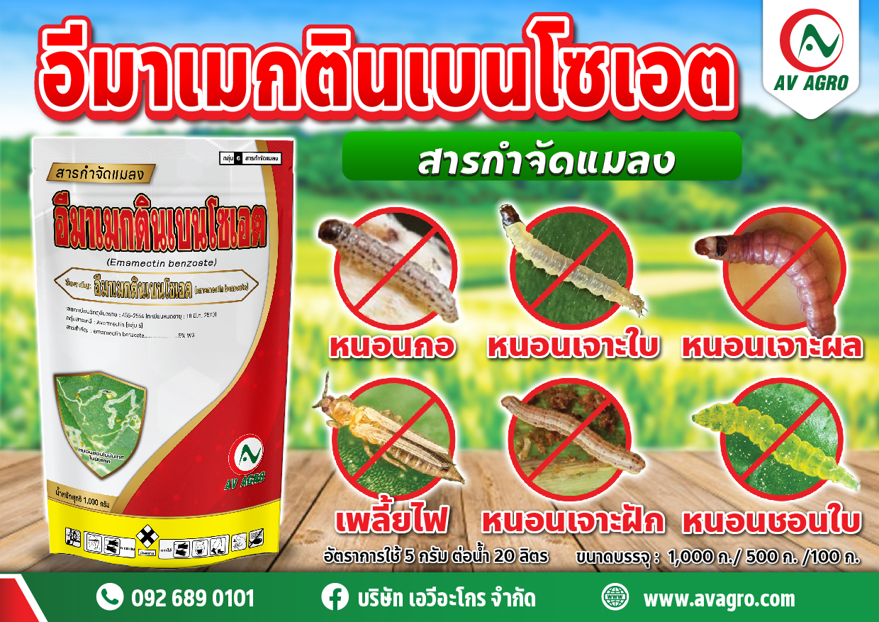 อีมาเมกตินเบนโซเอต ประโยชน์ : ใช้ป้องกันกำจัดหนอนชอนใบมันเทศในมันเทศ
