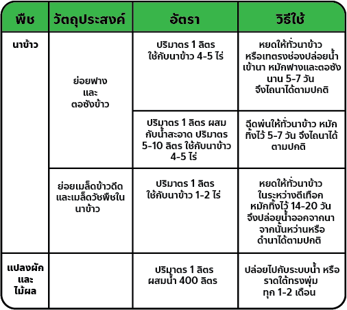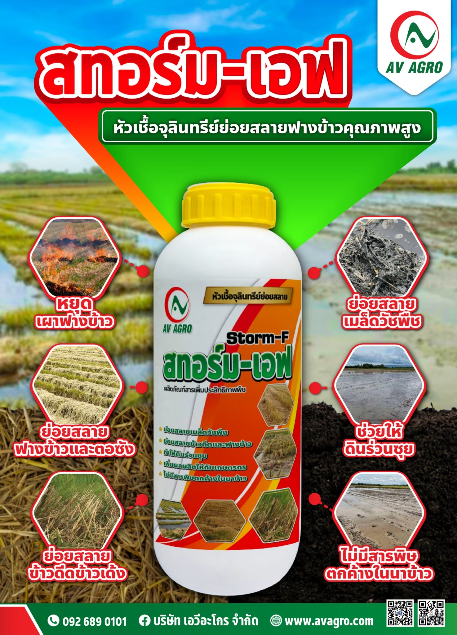 สทอร์ม-เอฟ หัวเชื้อจุลินทรีย์ย่อยสลาย คัดพิเศษจากห้องปฏิบัติการ สรรพคุณ 1. ในนาข้าว 2. ในแปลงพืชผัก และไม้ผล