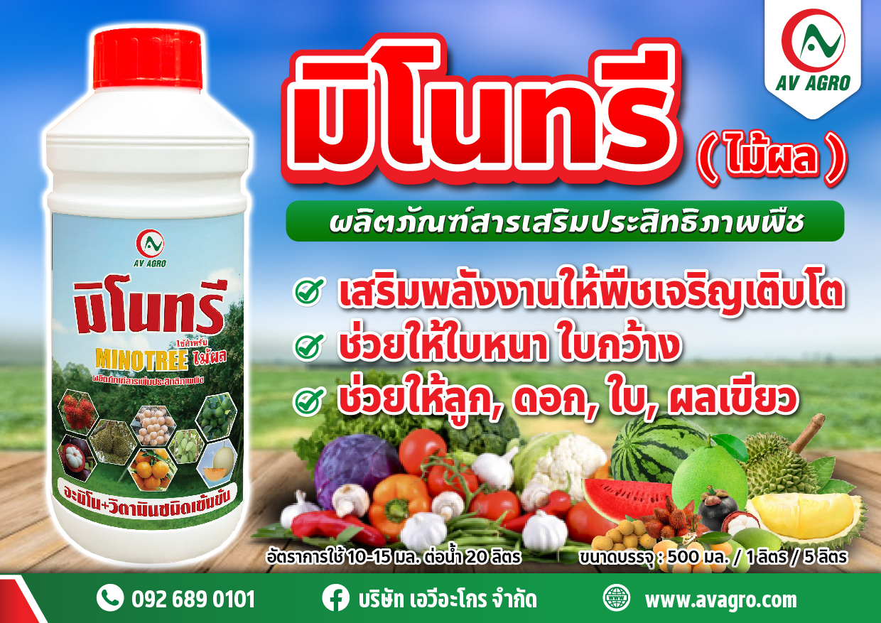 มิโนทรี ไม้ผล อะมิโน+วิตามินชนิดเข้มข้น เสริมสร้างการติดตาผลอ่อน ทำให้ช่อดอกสมบูรณ์ รังไข่ดอกตัวเมียมีรูปทรงสวยสมบูรณ์