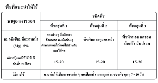 เอวี แม็กซ์ ธาตุอาหารรอง ประโยชน์ : เป็นส่วนประกอบของคลอโรฟิลล์ หรือสีเขียวที่พืชใช้ในการสังเคราะห์แสง