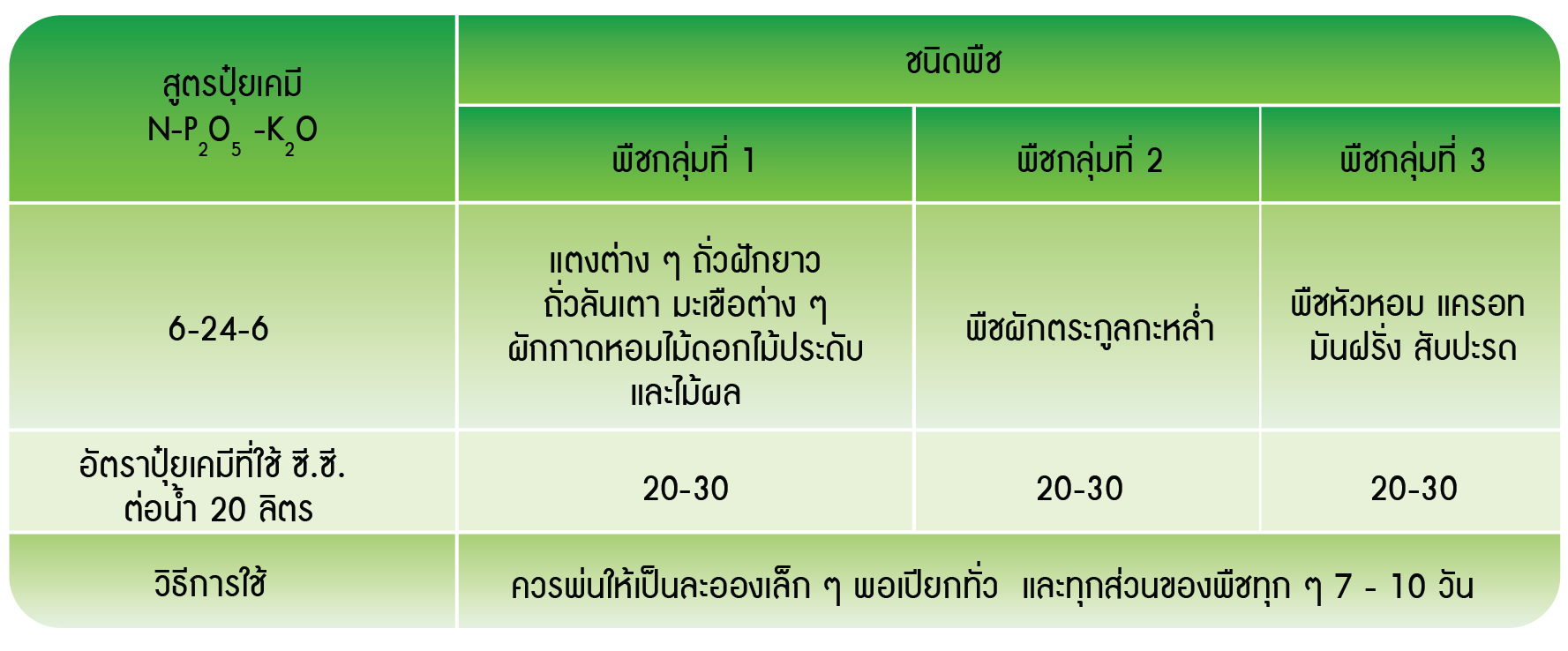 พืชที่แนะนำให้ใช้